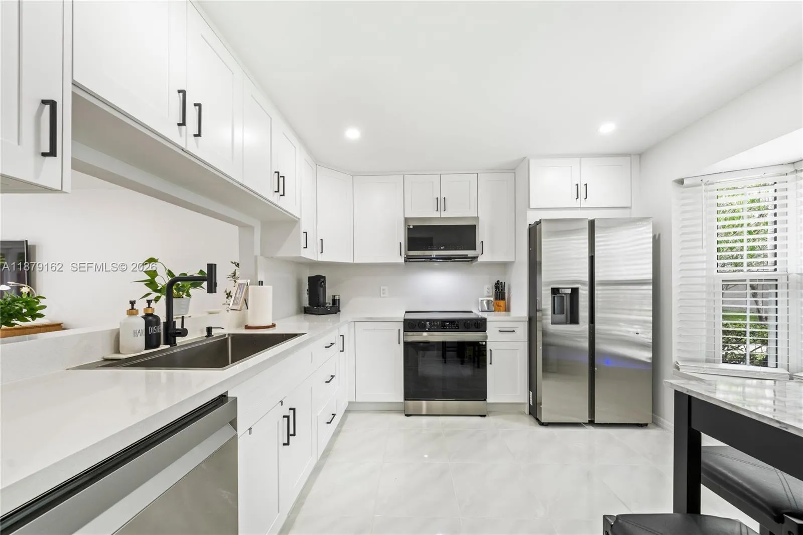 New Impact Windows and Doors. Renovated townhome and move-in ready! Beautifully updated fee simple townhome featuring all impact, updated kitchen, LED lighting, and new stainless steel appliances. The modern open kitchen offers quartz countertops and new storage and cabinetry. 2-bedrooms upstairs feature on-suite full bathrooms, including contemporary built-out closets for maximum storage.