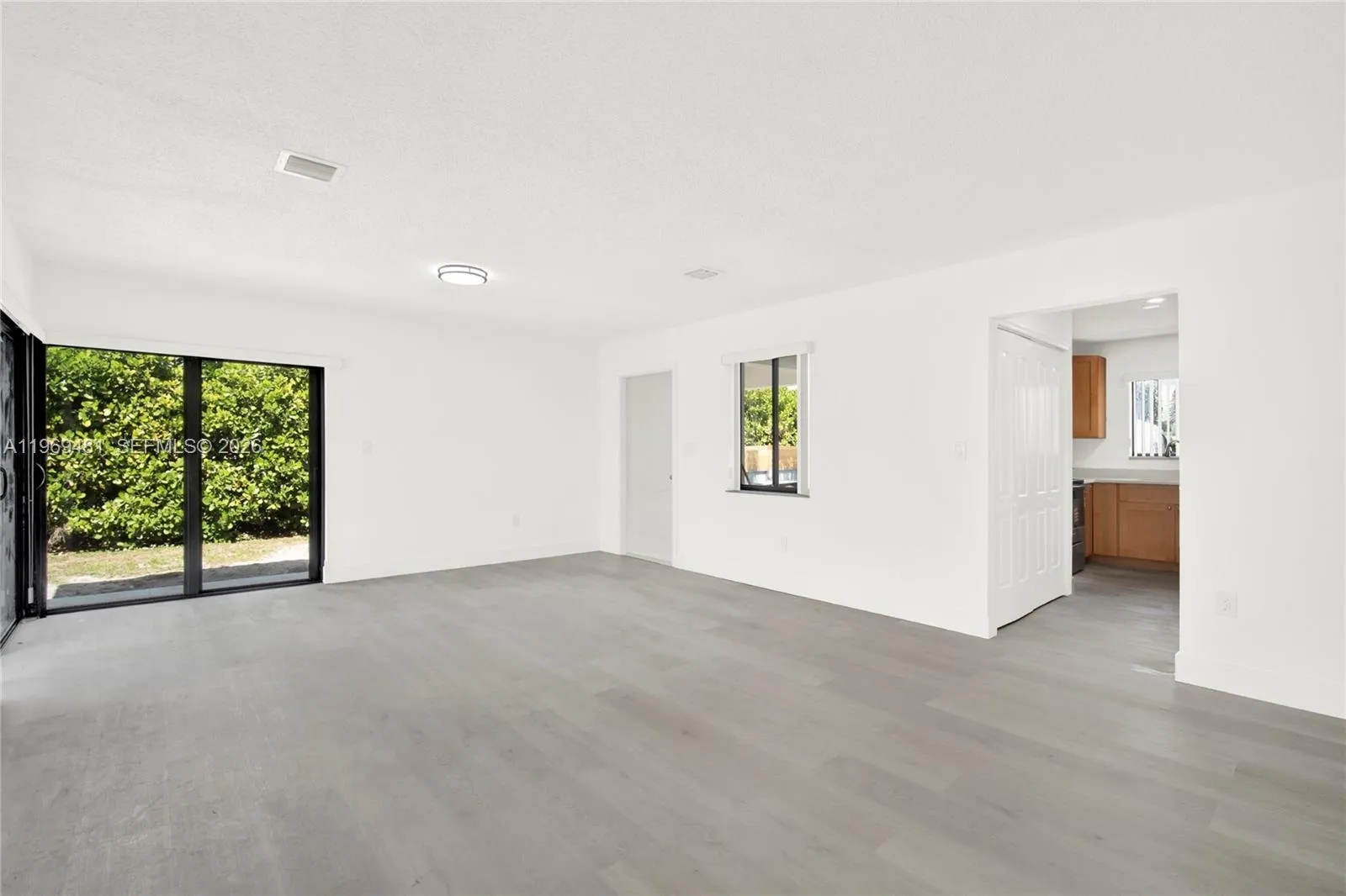 Beautifully updated and move-in ready, this 1,395 sq ft West Miami 3BR/2BA pool home blends modern upgrades with everyday comfort. A charming, shaded front porch welcomes you inside to an open living and dining area, seamlessly connected to a stylish kitchen with wood cabinetry, stainless-steel appliances, and granite countertops.
