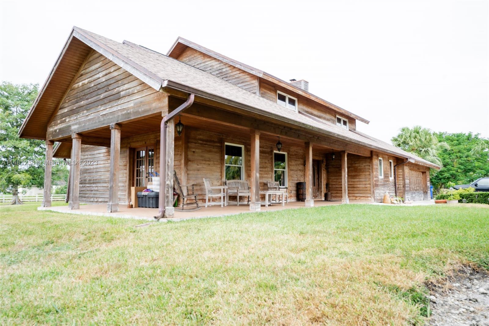 Discover this beautiful two-story home located in the sought-after town of Southwest Ranches. Its 2.37 acres feature lush landscapes, fruit trees, and a large detached multi-purpose storage unit. At the heart of this beautiful South Florida paradise sits a cabin-like home that offers a combination of coziness and luxury. With three bedrooms, two and a half bathrooms, an inviting kitchen, and three spacious living spaces this home can be a captivating residence or an incredible investment opportunity. The back of the home features a back patio with a stunning view of the enormous lot and abundant greenery.